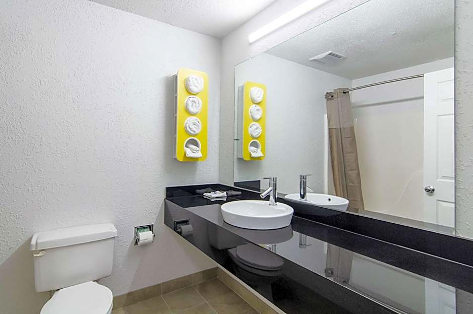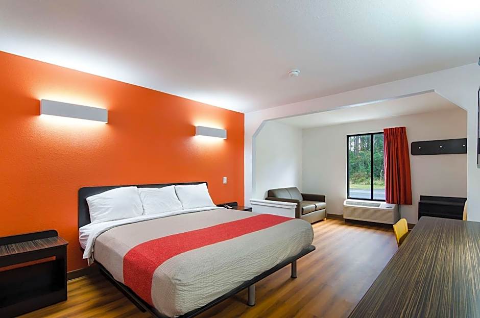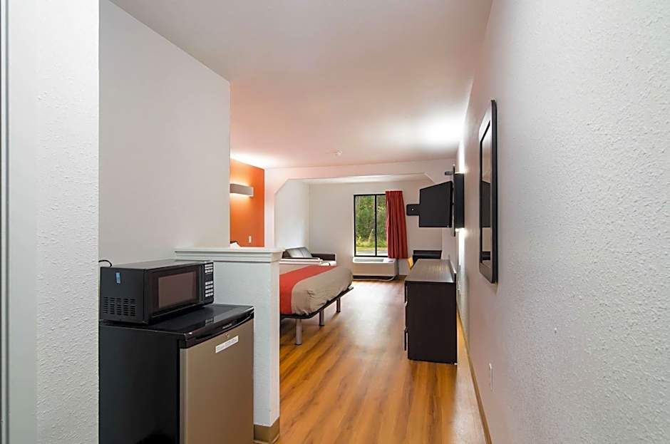 This suite features a microwave, small refrigerator, and seating area with a sofa. A cable TV is also included.
